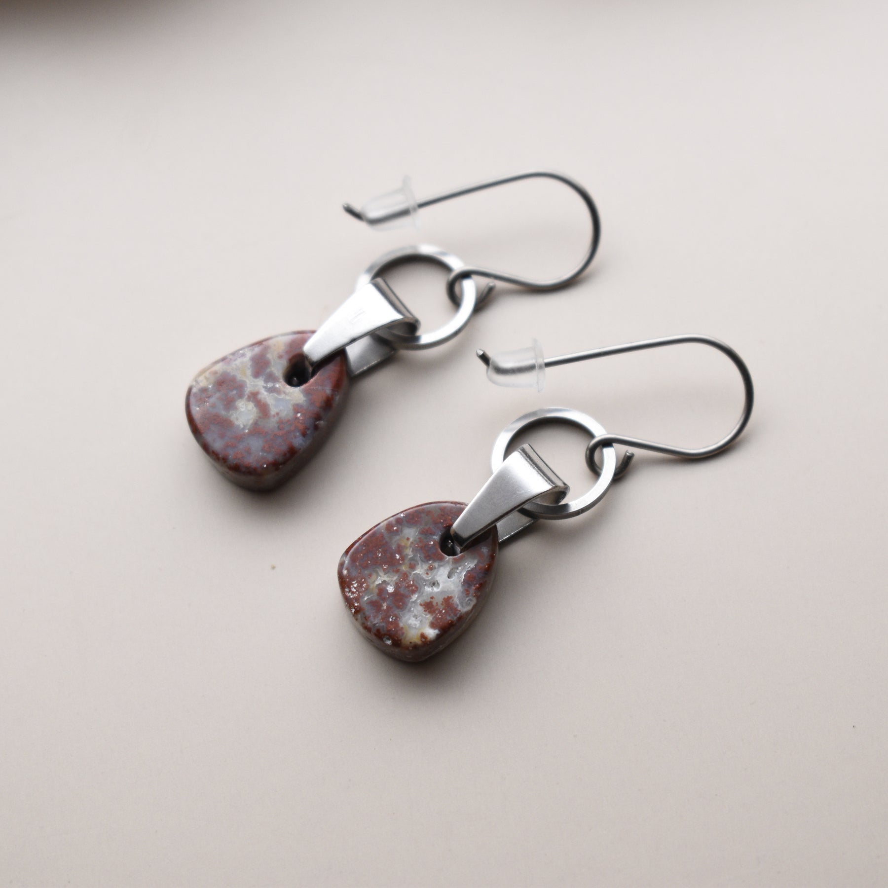 Red and White Jasper Earrings in Stainless Steel and Titanium Hooks