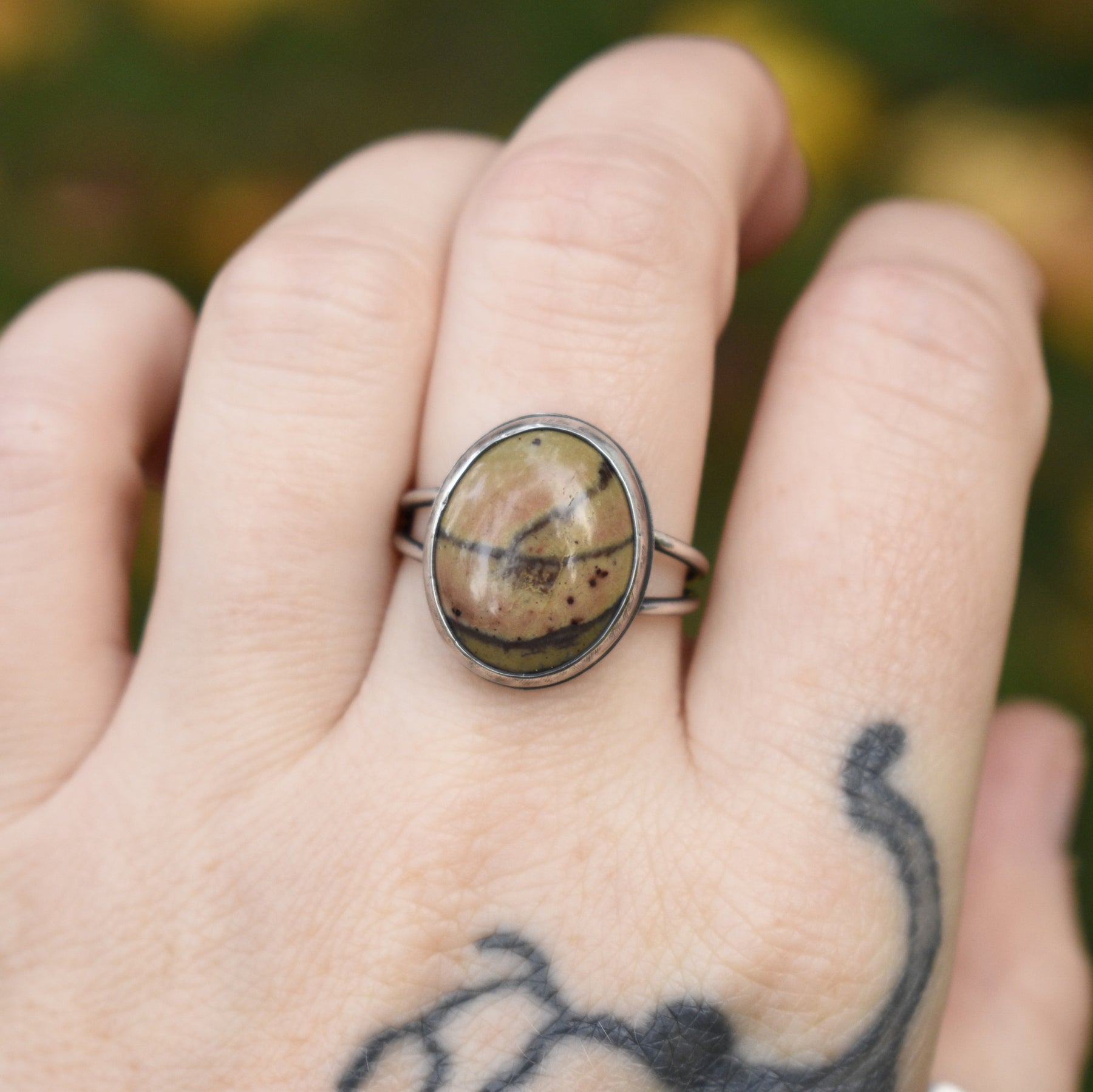 Sterling Silver Banana Jasper Ring - US Size 7.75