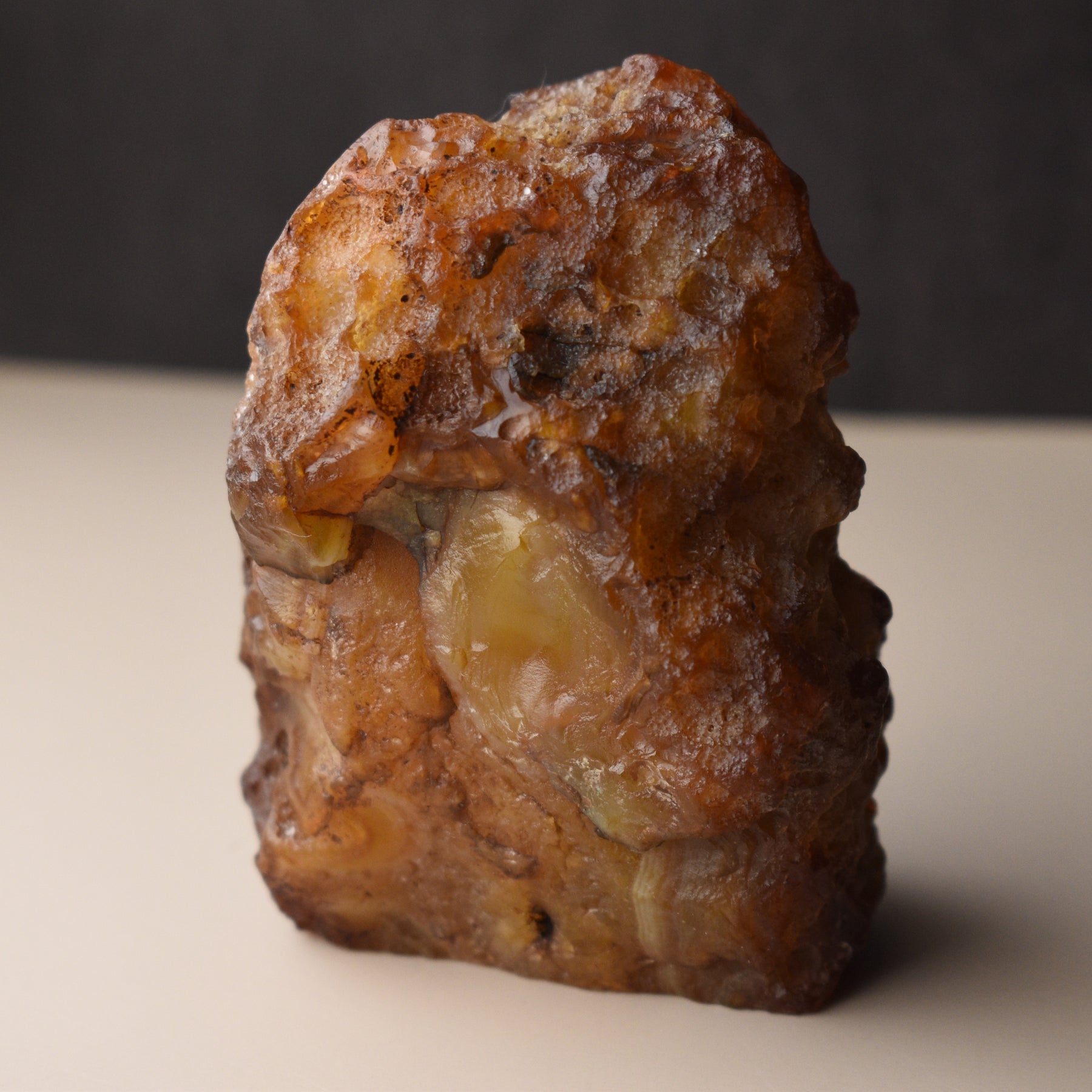 This Washington Carnelian Agate specimen was hand collected, cut and polished by Woodland Metalsmith. The clear and banded parts were sanded and polished by a rotary tool and then the entire piece was hand polished with mineral oil.