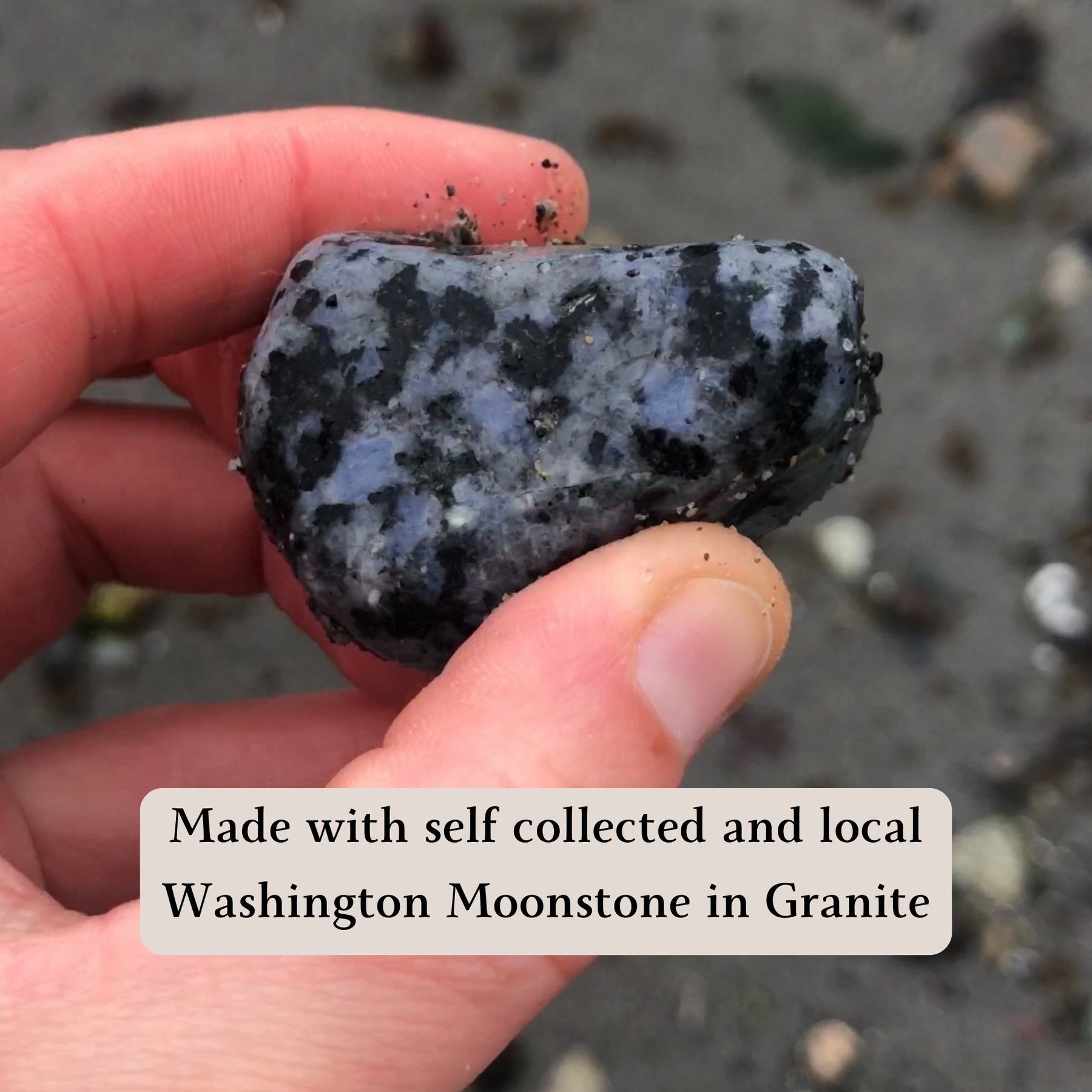 Washington Moonstone (in Granite) pendant necklaces for men and women on adjustable black cords. These are handmade in small batches, from cutting the stone to hanging it on the bail. Choose a pendant from the current batch!