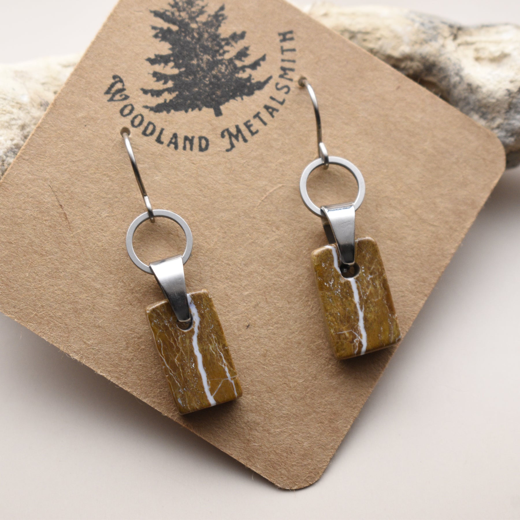Each pair of earrings is completely made by hand, showcasing the Pacific Northwests beautiful gemstones. Each stone found by Woodland Metalsmith has its own charm, making each piece of jewelry unique!